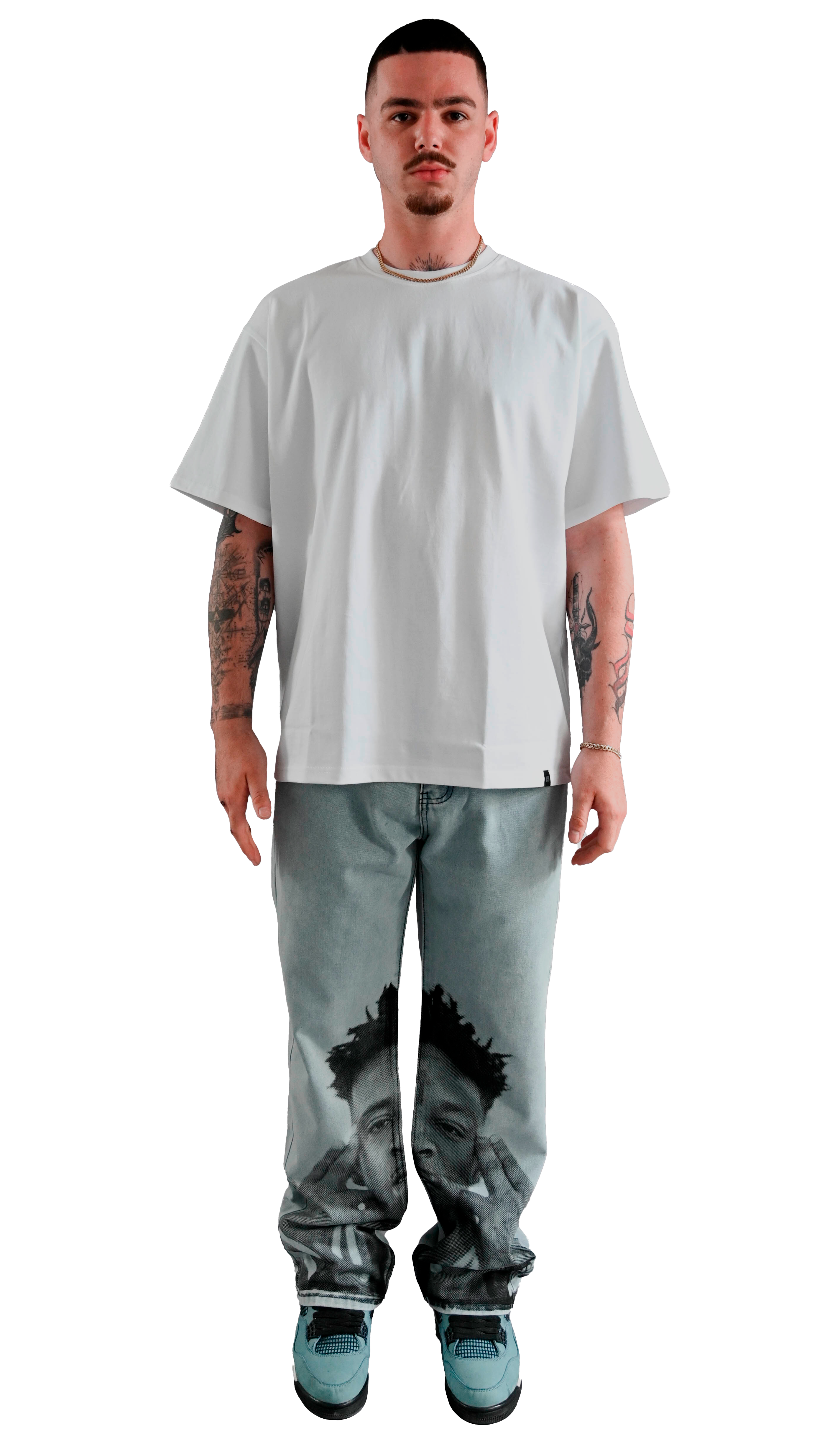 Step up your fashion game with our exclusive 21 Savage Artistic Print Jeans. Designed for those who want to make a bold statement, these jeans feature a striking and detailed print of 21 Savage, transforming your everyday denim into a canvas of expression.