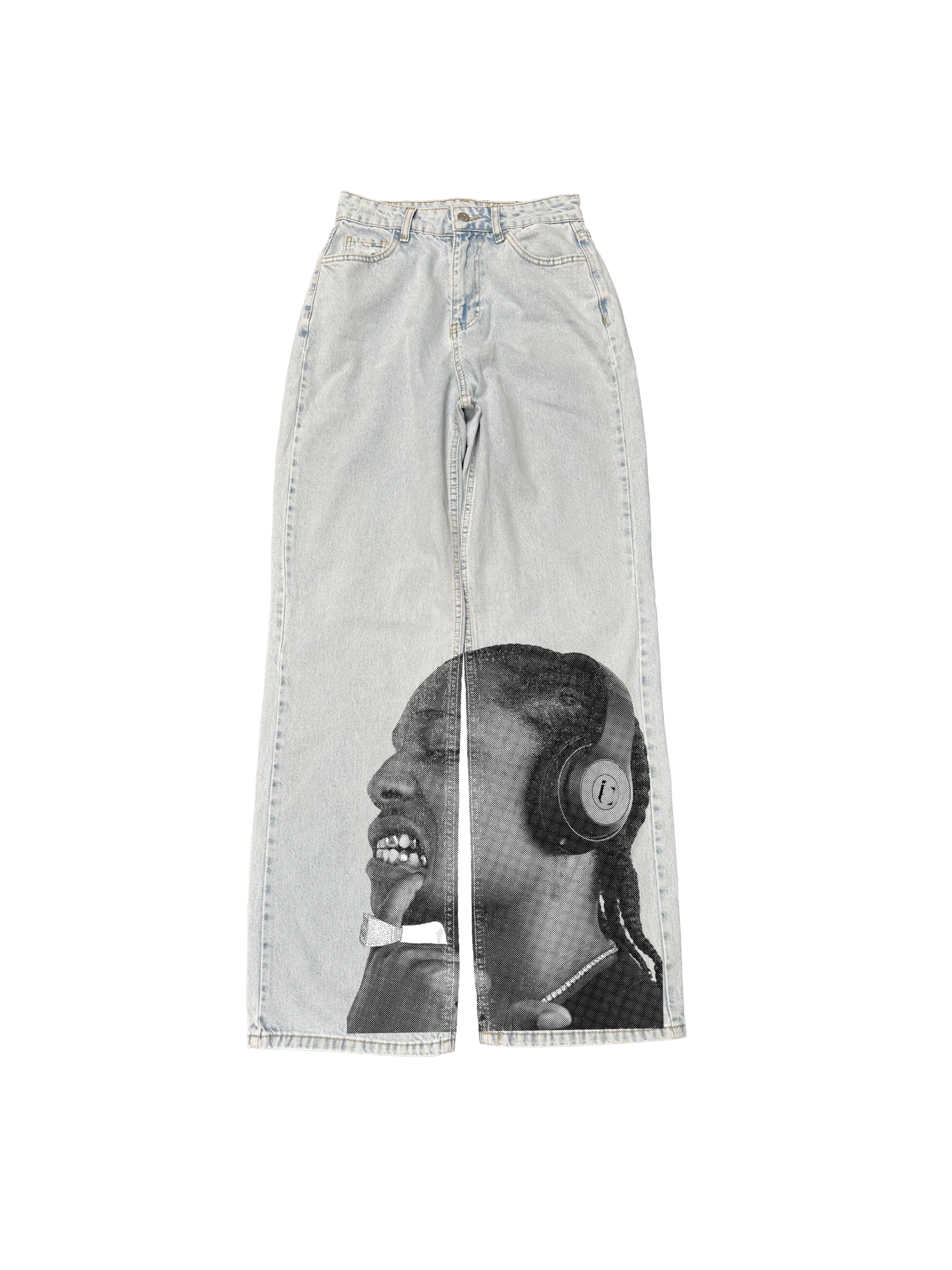 Step up your fashion game with our exclusive ASAP Rocky Jeans. Designed for those who want to make a bold statement, these jeans feature a striking and detailed print of ASAP Rocky, transforming your everyday denim into a canvas of expression.
