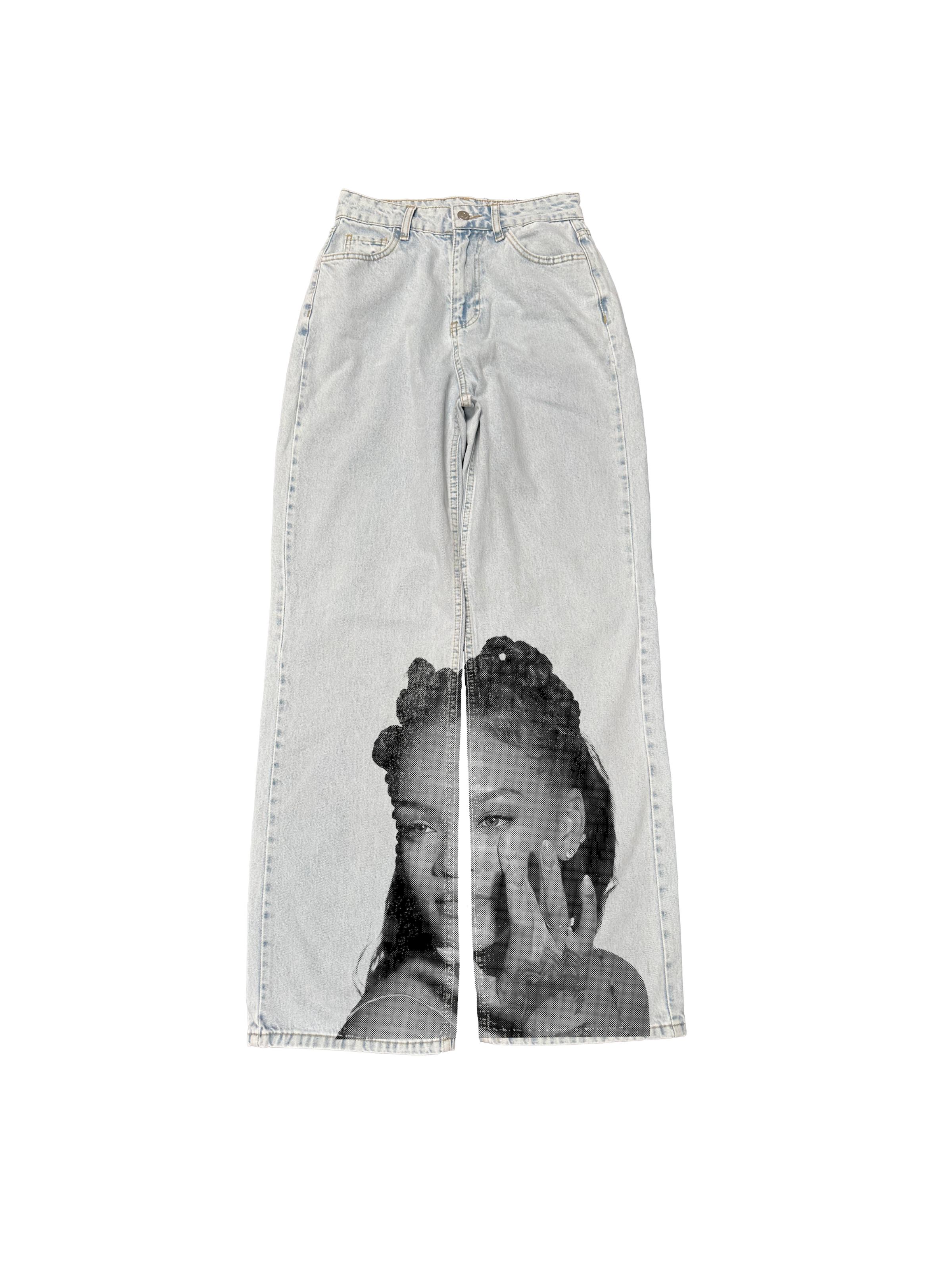 Step up your fashion game with our exclusive Rihanna Artistic Print Jeans. Designed for those who want to make a bold statement, these jeans feature a striking and detailed print of Rihanna, transforming your everyday denim into a canvas of expression.