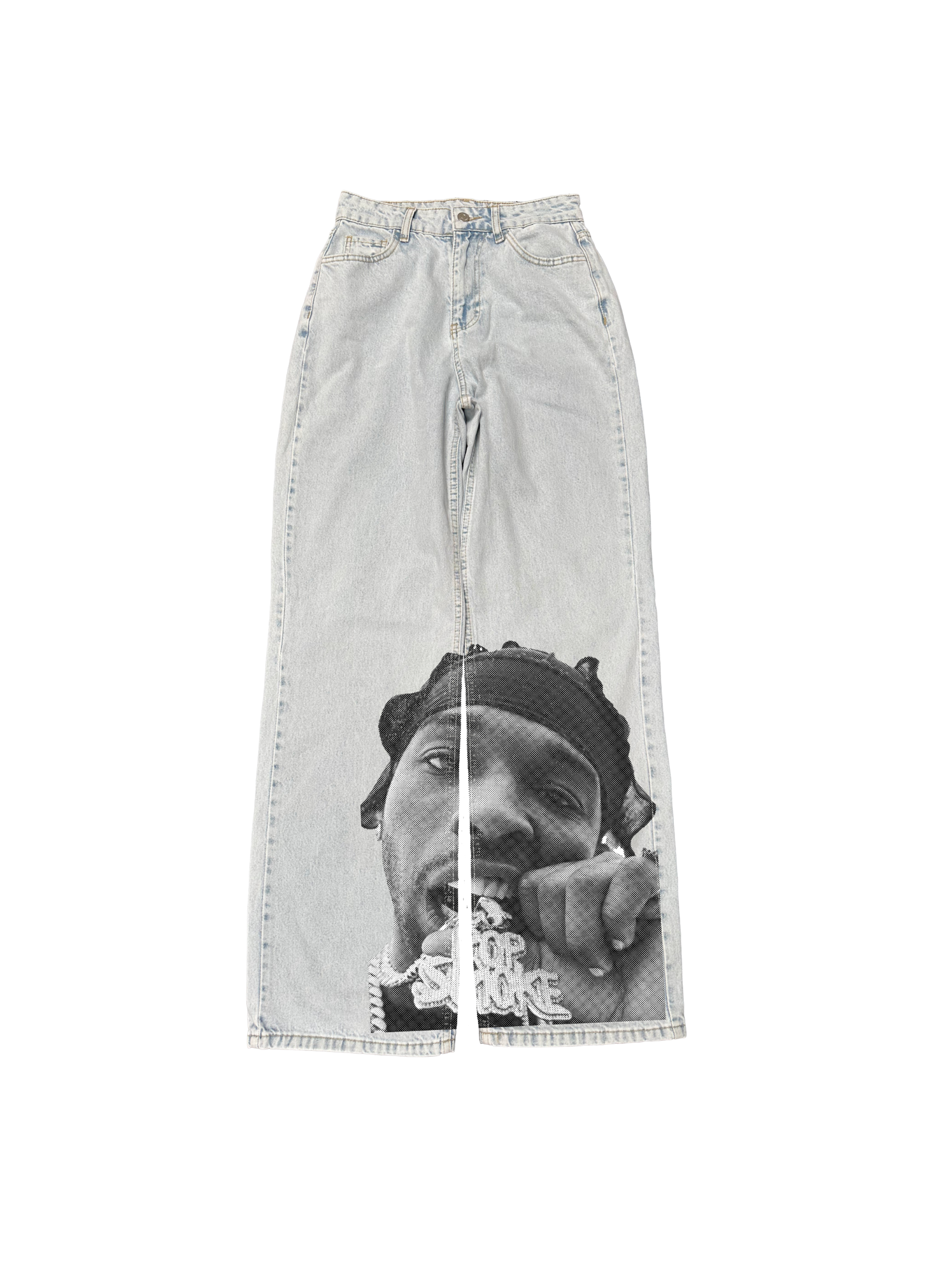 Step up your fashion game with our exclusive Pop Smoke Artistic Print Jeans. Designed for those who want to make a bold statement, these jeans feature a striking and detailed print of Pop Smoke, transforming your everyday denim into a canvas of expression.